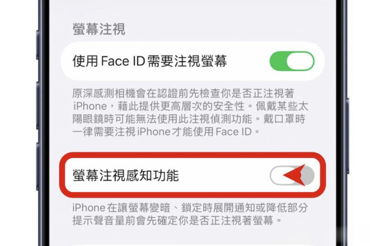 关闭 Face ID 的【屏幕注视感知】