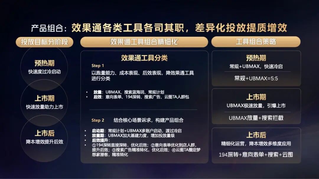 产品工具的使用也讲究策略性。省广团队通过“UBMAX”实现高效曝光,结合搜索广告精准承接主动意向用户,并搭配人群提效、意向表单等多工具组合,构建从曝光到转化的完整闭环,确保预算效果最大化。