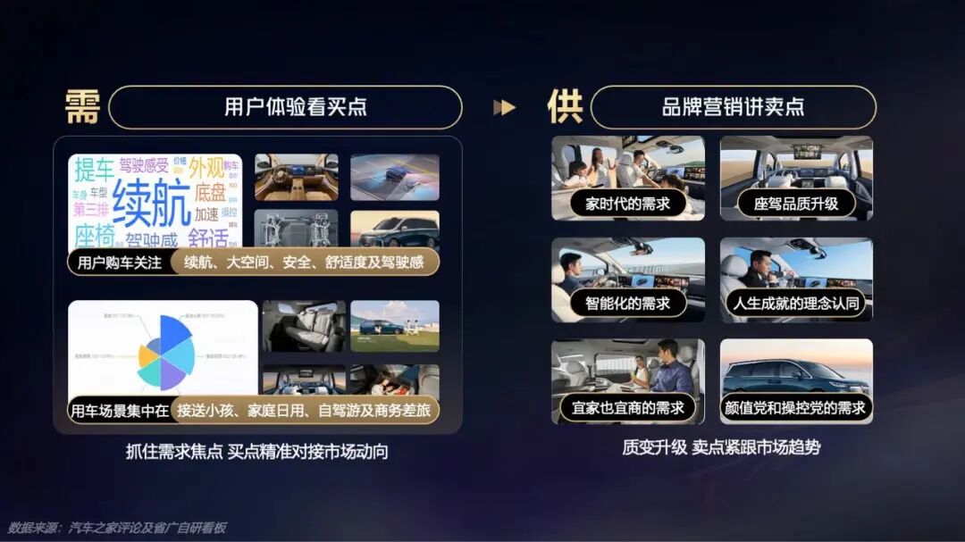 其次,车型定位上,通过云图和省广团队车主调研看板的交叉验证,明确了不同车型的差异卖点与核心场景。