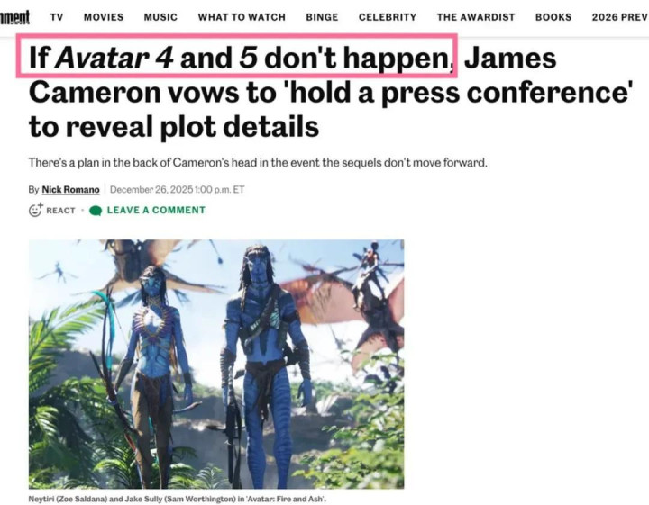 尽管早就预告了有《阿凡达4》和《阿凡达5》,但前几天,导演卡梅隆接受外媒采访却略显得谨慎。